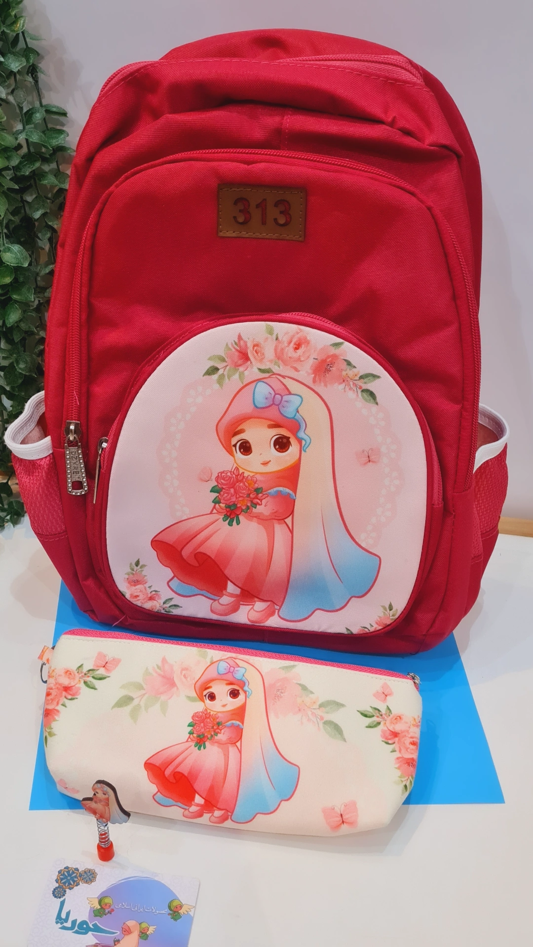 ست کامل(کوله رنگ زمینه سرخابی)، کیف لقمه، جادستمالیناموجود