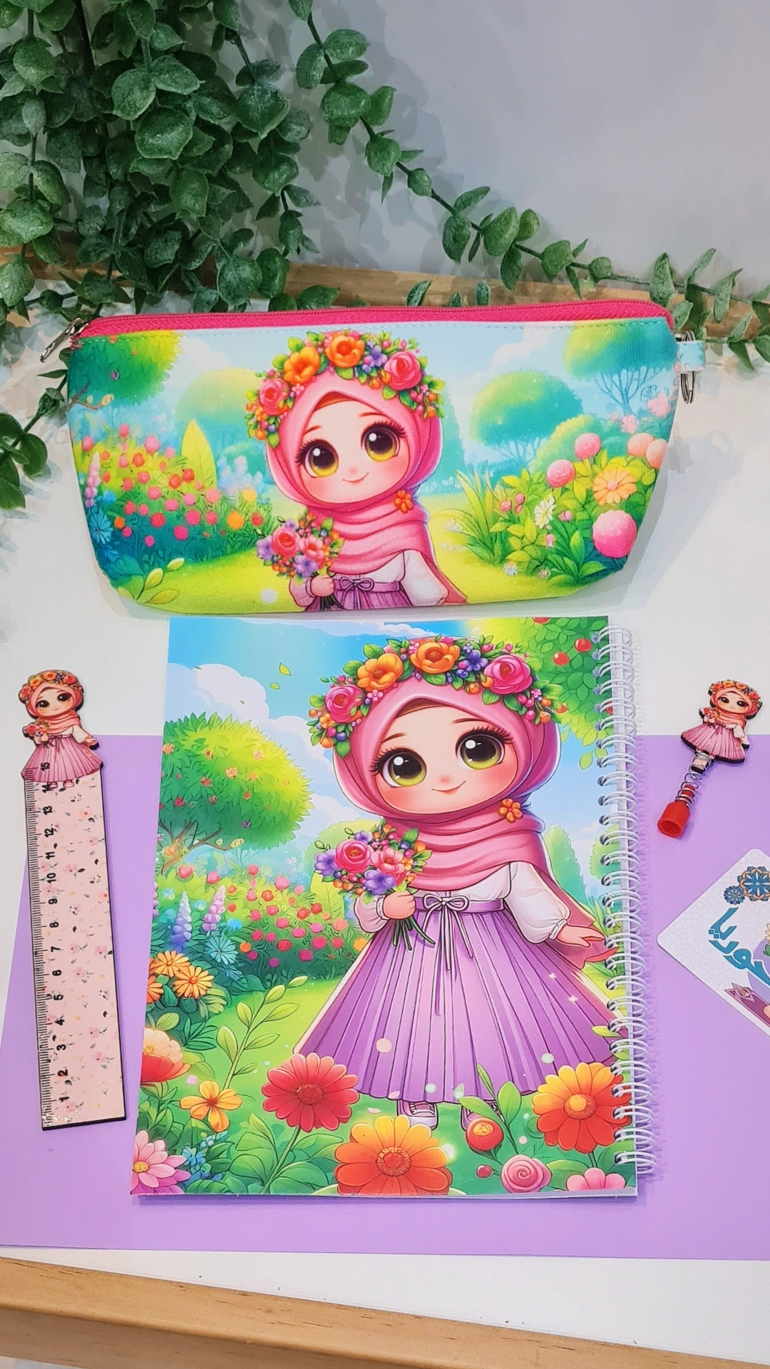 ست دفترمشق +دفترنقاشی، جامدادی، خطکش، سرمدادی طرح حوراناموجود