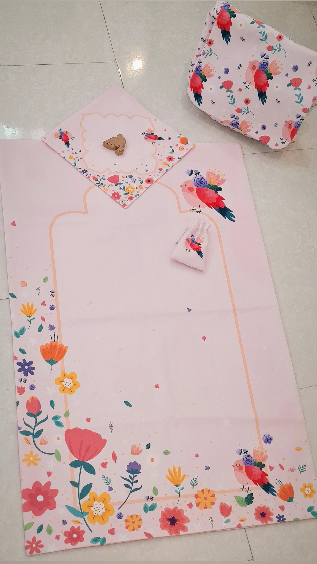 ست جشن تکلیف 🌸طرح قناری🕊️، جنس مخمل درجه یک با طرحی زیبا آسترداره.. 👛کیف بابند قابل تنظیم قابل شستشو و رنگ ثابت ابعاد سجاده 60در90.. این ست شامل سجاده، جانماز،کیف، چادر هست.. آماده سازی ده روز کاری