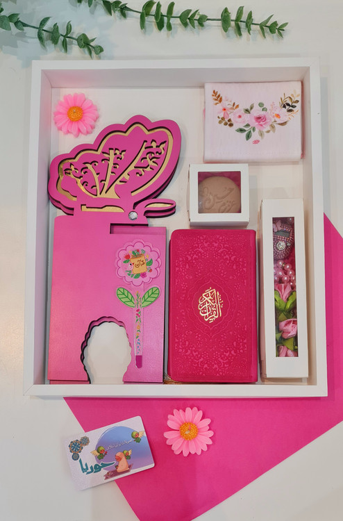 رحل پروانه، قرآن 16در9.. نشانگر، مهر عزیزم حسین، تسبیح صددانه سه گل، ،صلوات شمار اویزدار ،جانماز جیبی و پک درب طلقی،،