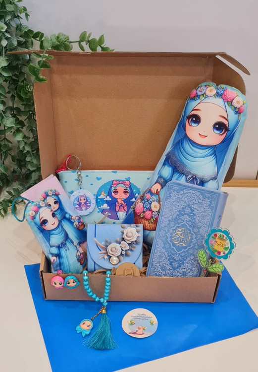عروسک بهارناز، هدیه قرآن، نشانگر گل، جامدادی، جادستمالی، تسبیح عروسکی، جانمازجیبی، گیره روسری، مهرالزهرا،عروسک کوچک
